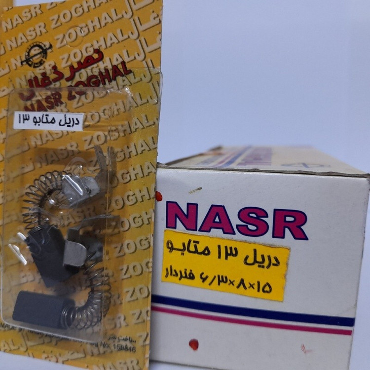 ذغال دریل 13متابو دریل 600 و 620 متابو فنردار سرسیم دوشاخ ابعاد 15×8×6/4میلیمتر در هر جعبه 10 جفت قرار دارد *خرید جعبه ای ، تخفیف ویژه دارد *